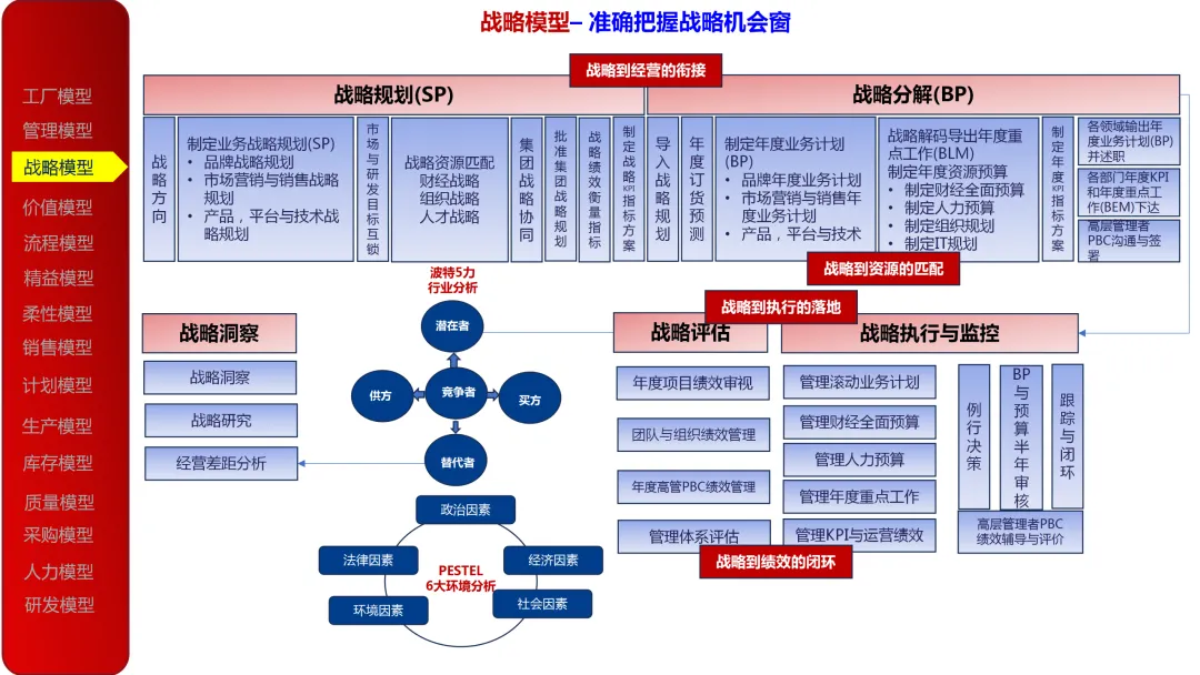 我们的起点是“对准战略”。这意味着,我们不能孤立地看采购、生产或销售,而要让各部门的计划都源自同一个源头——公司的业务战略与年度目标。通过一套严谨的战略解码与业务计划(BP)流程,我们将宏观方向转化为各领域具体的行动纲领和绩效指标(KPI/PBC),确保研发、营销、供应链等所有职能在同一张作战地图上推进。