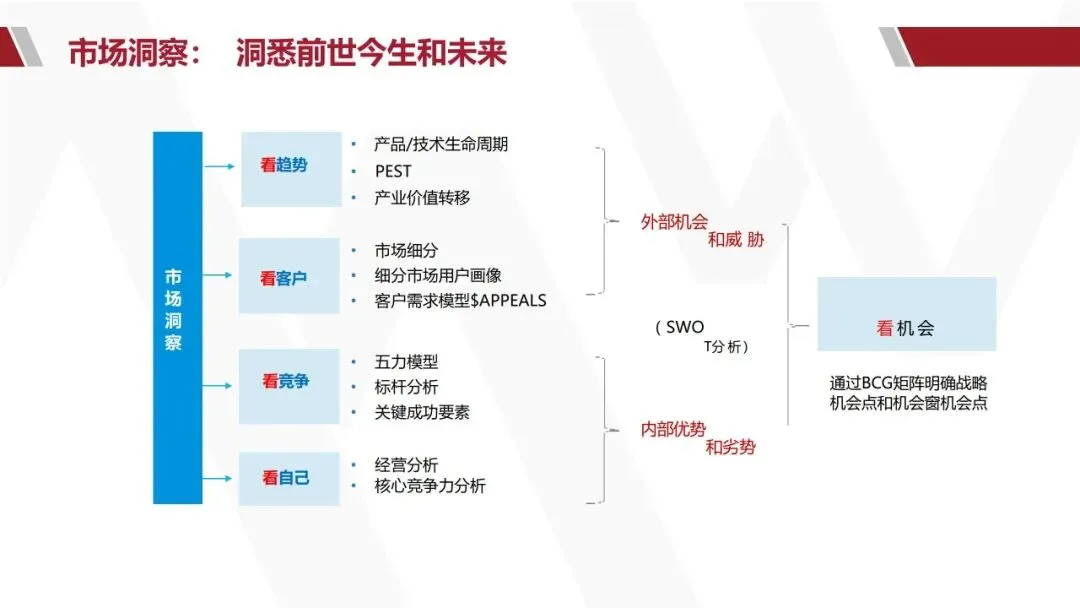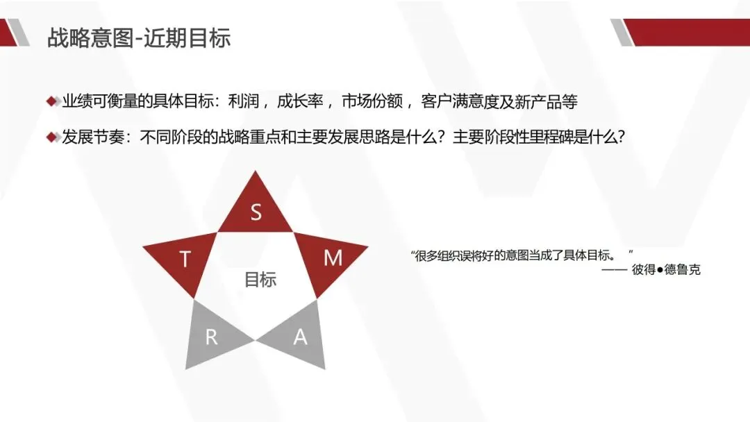 怎么定:结合“看宏观”的趋势判断和“看自己”的能力基线,制定既有野心又现实的目标。例如:在XX细分市场占有率从X%提升至Y%;实现年营收Z亿元。
