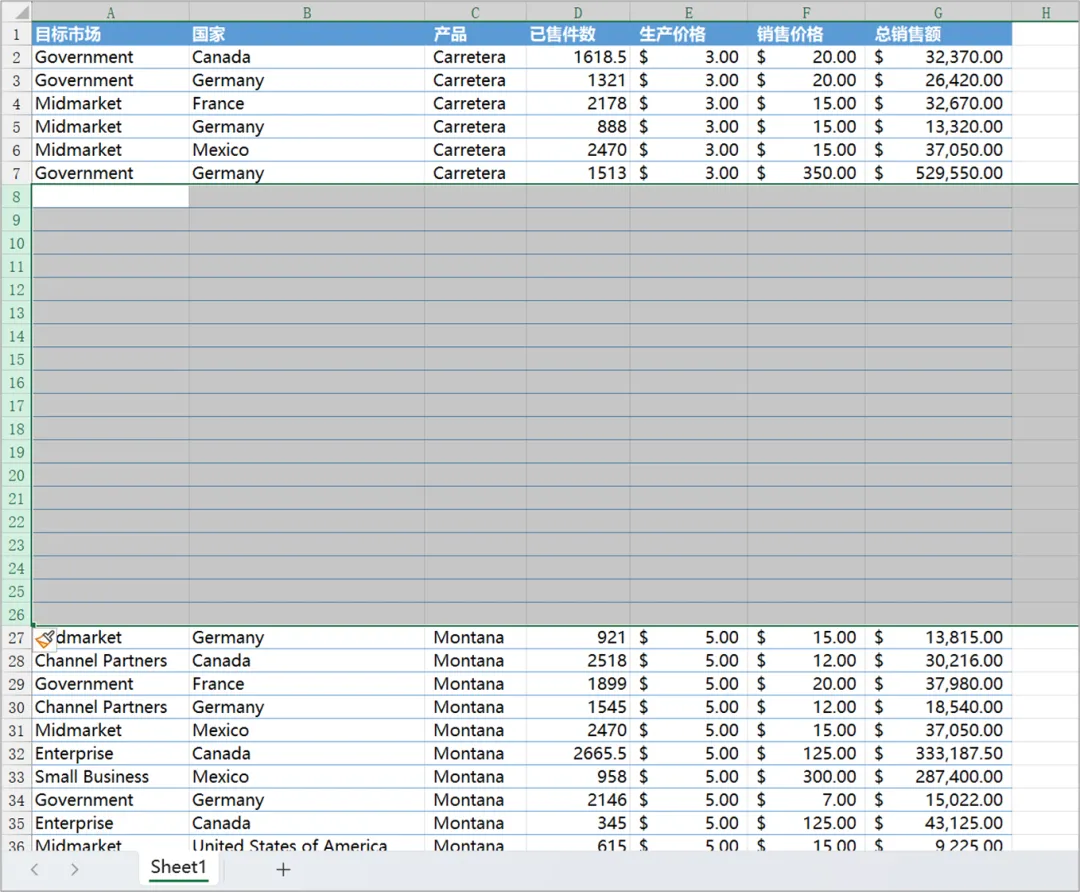 此时,即可插入与所选行数等量的空行。