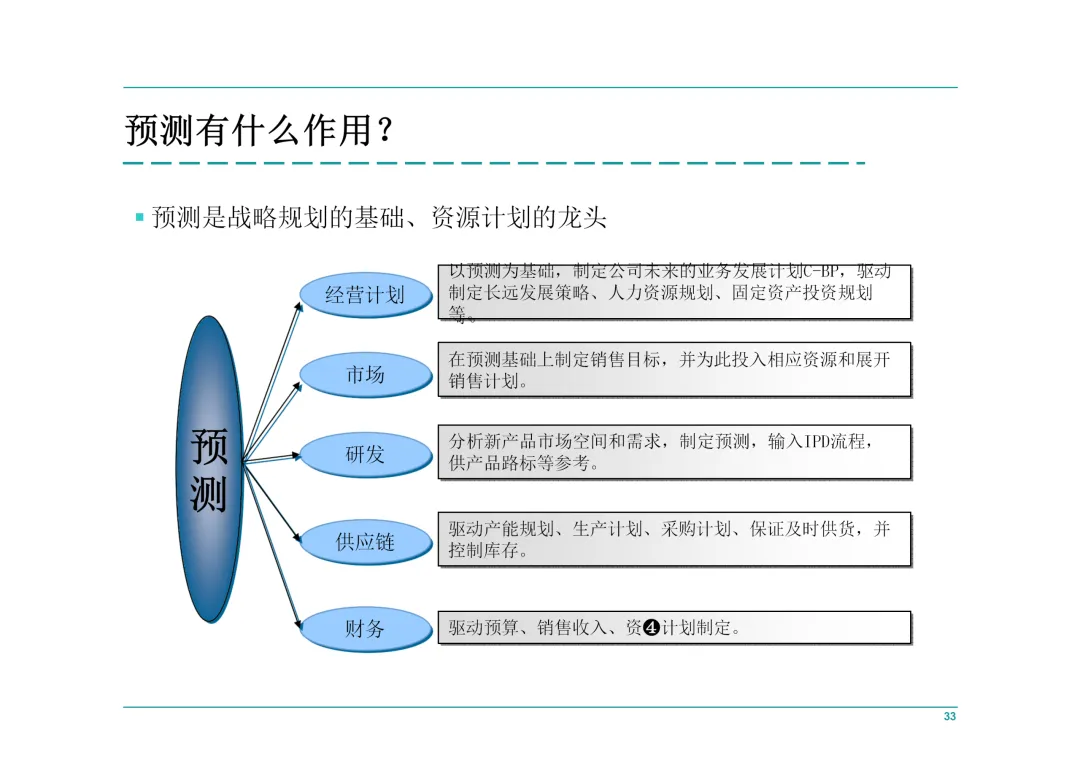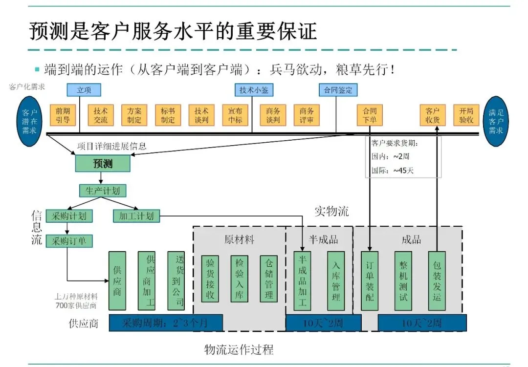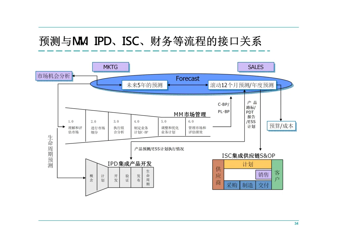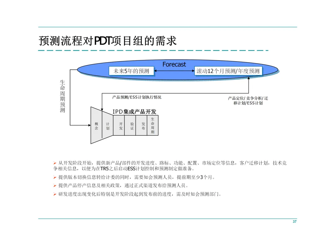 预测流程是驱动协同的“龙头”。 文档明确指出,预测是资源计划的起点。在IPD框架下,预测并非销售或市场的孤立行为,而是基于端到端需求管理流程的输出。供应链需基于PDT提供的产品路标、切换信息进行要货预测,其准确性直接关系到客户服务水平、库存成本与财务安全。预测偏差将导致供货中断或资源积压,深刻影响项目利润。