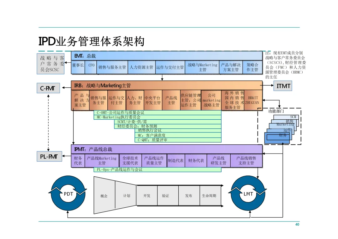 IPD管理体系与“重量级”团队是协同基石。 IPD并非单一的开发流程,而是一套包含市场管理(MM)、需求管理(OR)、任务书开发(CDP)及产品开发各阶段的完整体系。供应链代表作为产品开发团队(PDT)的核心成员,从概念阶段即介入,确保制造、采购、订单履行等策略与产品设计同步规划。这种“重量级”团队架构,要求成员不仅贡献专业领域知识,更要对产品的商业成功共同负责。