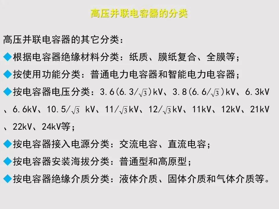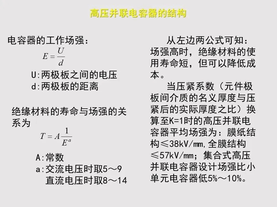 系统电压不能太低(一般在35kV以上)、通过电容器单元的额定电流不能太大(小于60A)、电容器元件的极间介质不能太厚(质量密度法厚度不超过30.5μm )