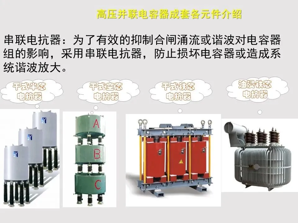 对配电网的并联电容器组来说,抑制谐波是很必要的,我们抑制谐波的方法主要是使用串联电抗器,相当于在电容旁边串联一个电抗,使得补偿回路的阻抗在某次谐波相对于系统感性负载(从电容器组接入点面向系统侧)来说呈感性,从而消除由于电路呈容性而带来的谐波震荡。