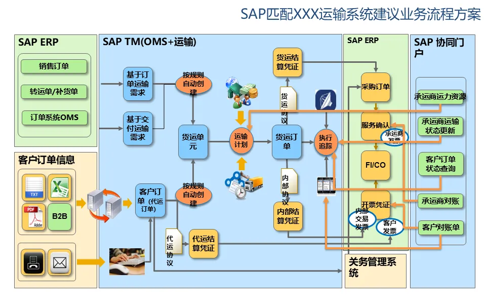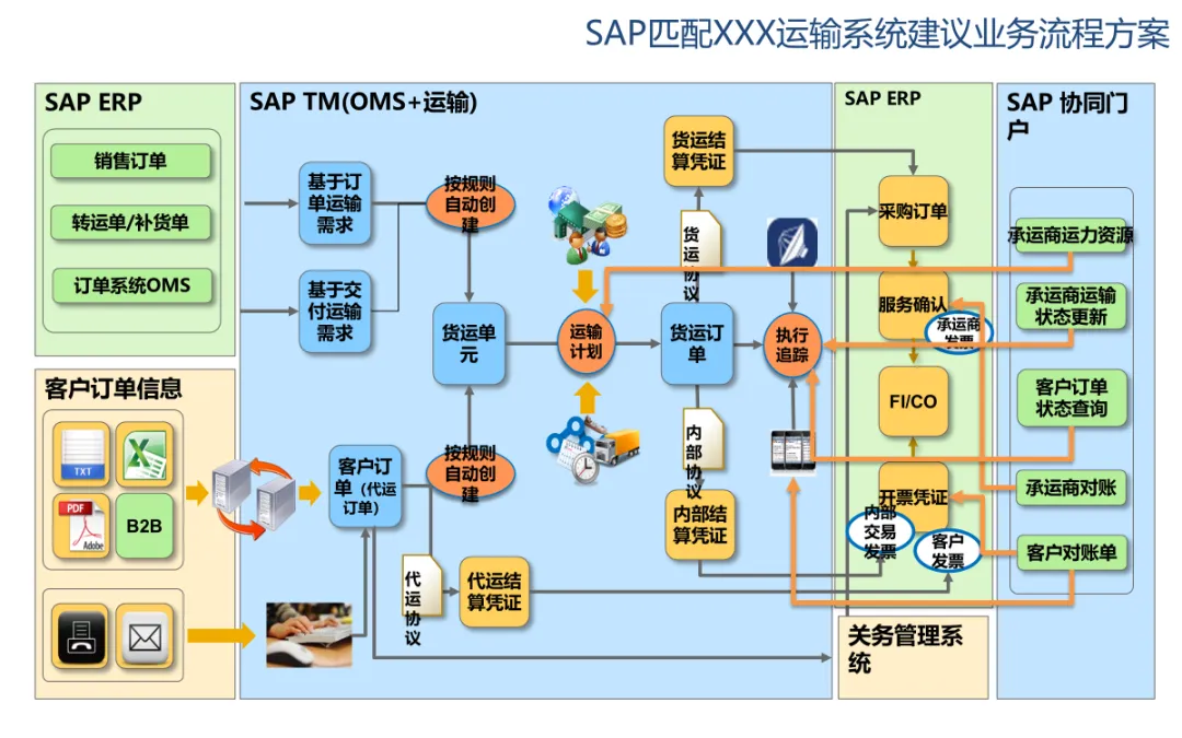 结合行业信息化、平台化、轻量化的发展趋势,XXX 集团未来需以 SAP 为核心平台,构建 “业务协同 + 数据贯通 + 智能决策” 的发展格局。建议优先推进业财深度融合,实现订单、仓储、运输与财务数据的实时同步;其次强化供应链可视化,通过 GIS/GPS 集成实现货物与运输资源的全程监控;最后拓展平台化服务能力,为电商、供应链金融等新业务场景提供技术支撑。