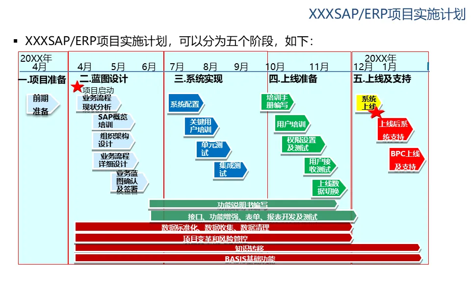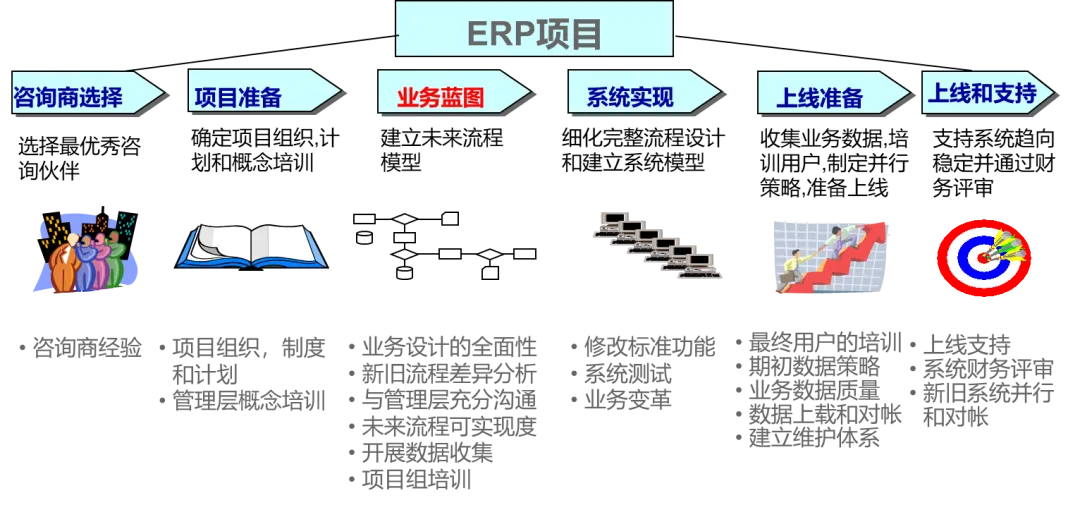 项目采用 “五阶段实施法”,从前期准备、蓝图设计、系统实现,到上线准备与后期支持,全程严控项目质量。组建由集团高层、业务骨干、实施顾问组成的专项团队,通过业务流程梳理、数据标准化、用户培训等关键动作,确保系统与业务深度适配。同时建立风险管控与知识转移机制,同步输出操作手册、培训材料等交付物,保障项目上线后平稳运行。