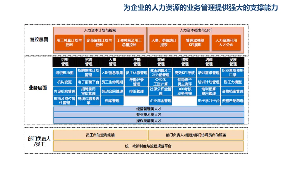 搭建全生命周期人力资本管理平台,实现 “组织 - 人员 - 绩效 - 薪酬” 的一体化管控。组织管理支持多种组织结构类型,可动态调整汇报关系与编制规划;人事主数据系统整合员工基本信息、合同、考勤等数据,支持灵活查询与报表输出。薪酬管理模块适配不同地区社保、公积金缴纳规则,自动计算个人所得税与各类津贴,实现薪资核算与财务系统的实时过账。通过招聘管理、绩效管理与培训管理的协同,建立能力导向的人才发展体系,结合员工自助服务(ESS)与经理自助服务(MSS),提升人力资源管理效率与员工体验。