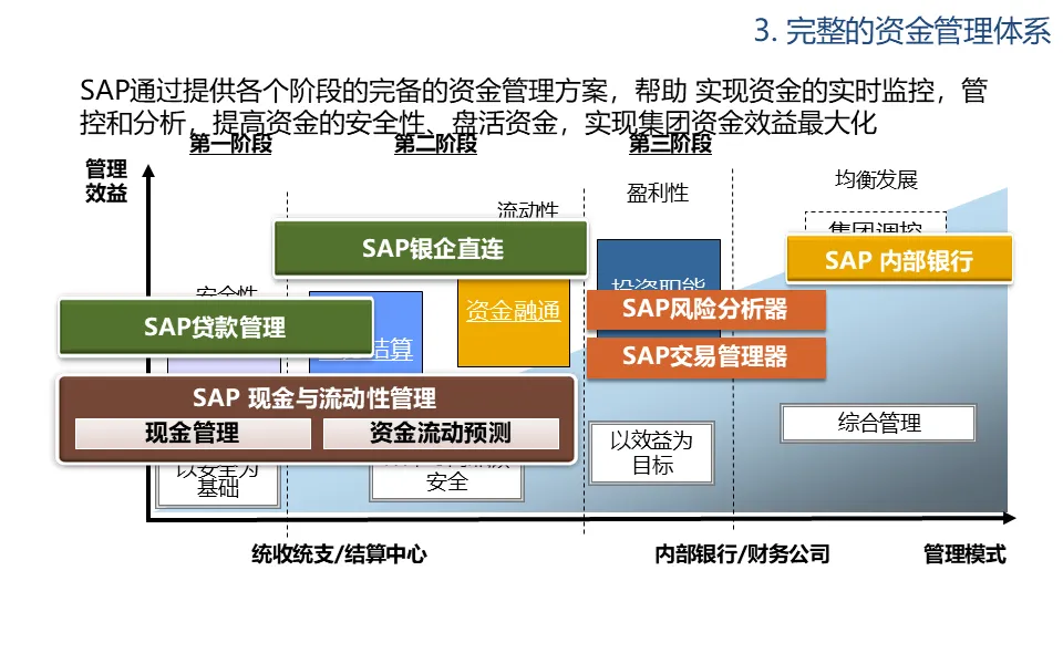 本次解决方案以 SAP ERP 为核心,搭建覆盖全业务、全流程的信息化平台。通过统一应用平台、统一基础数据,打破系统孤岛,实现订单、仓储、货代、运输与财务的无缝集成;同步整合微信、邮件、关务系统等外围应用,对接地磅、RFID 等硬件设备,构建 “端到端” 的数字化协同体系。同时遵循 “统一规划、分步实施” 原则,分阶段实现内部管控、业务优化与战略创新的递进式目标。