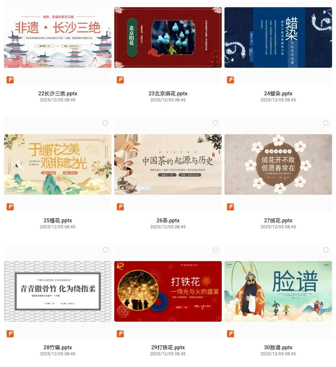 本文今日分享的是130款非遗文化主题PPT(国粹传承,传统文化,民间艺术等)
