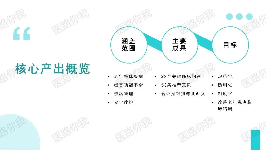 核心目标:覆盖老年特殊疾病、器官功能不全、慢病管理、安宁疗护四大领域,构建规范化、透明化体系,最终落脚点:改善临床结局,促进康复。