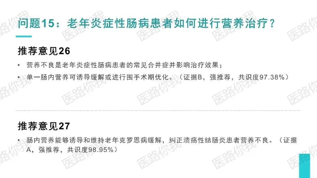 炎症性肠病:单一EN可诱导克罗恩病缓解;纠正溃疡性结肠炎营养不良。