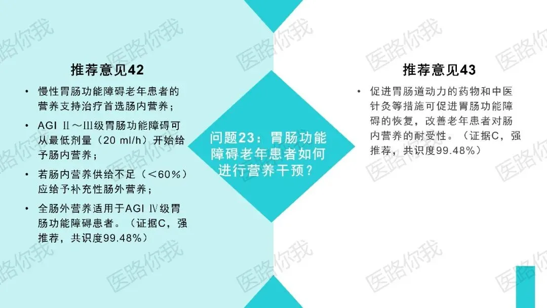 胃肠功能障碍:AGI II-III级从20 ml/h低速启动;联合促动力药或针灸改善耐受。