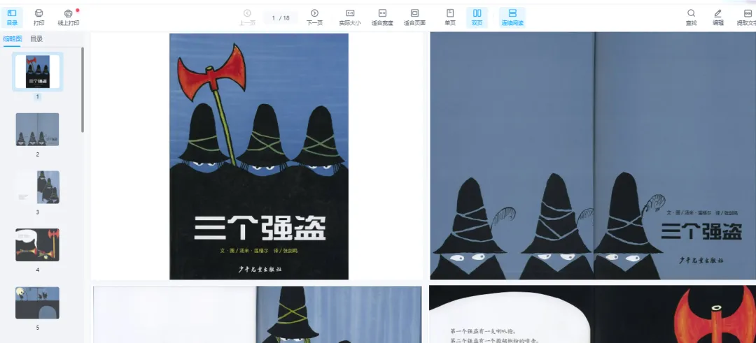 绘本《三个强盗》通过温暖的故事和深刻的主题,教导孩子们勇敢面对困难、改变自己,以及友爱和关心他人。无论是小朋友还是成人,都会被这个令人难以忘怀的故事所吸引和启发。