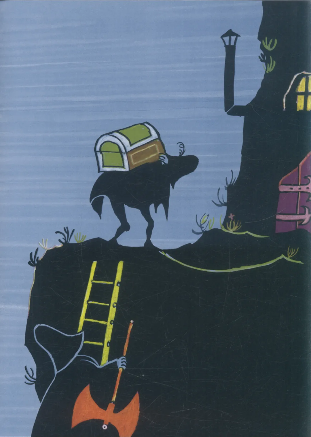 第三个强盗有一把巨大的红斧头。