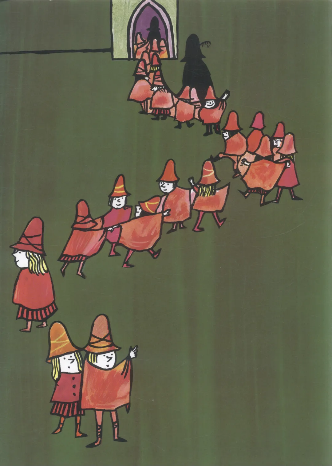 村子里的人全是戴红帽子、穿红斗篷的。