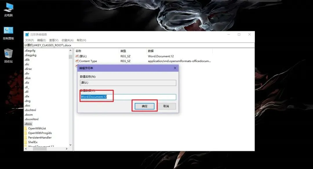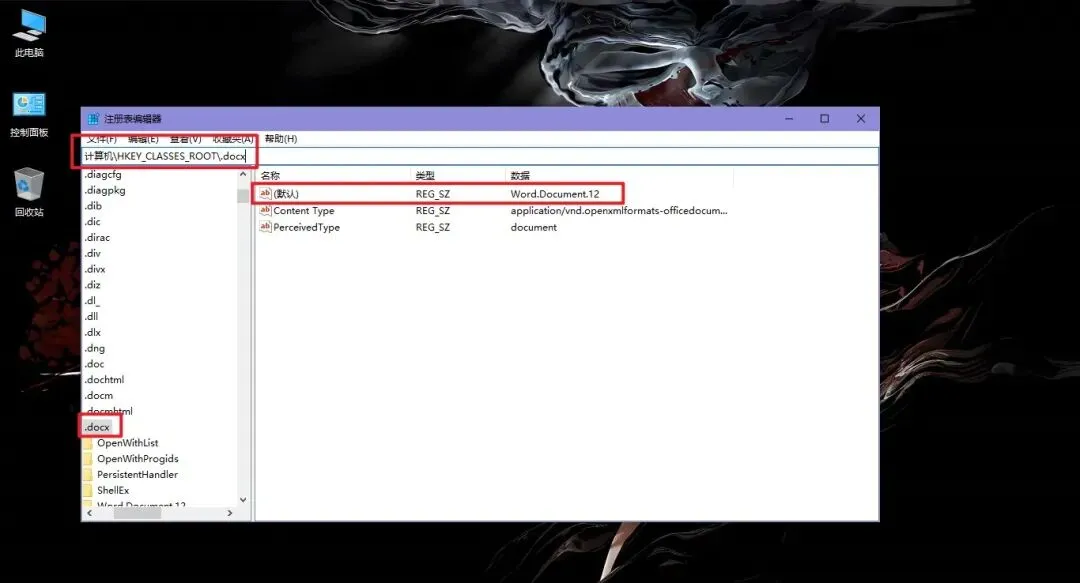 定位到路径HKEY_CLASSES_ROOT\.docx