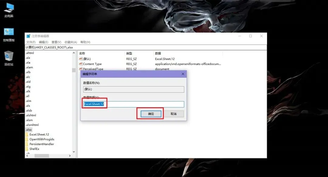 同上步骤,定位到HKEY_CLASSES_ROOT\.xlsx