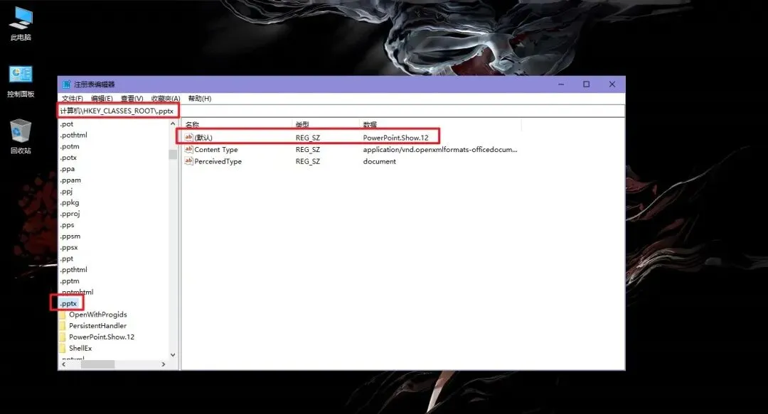 同上步骤,定位到HKEY_CLASSES_ROOT\.pptx