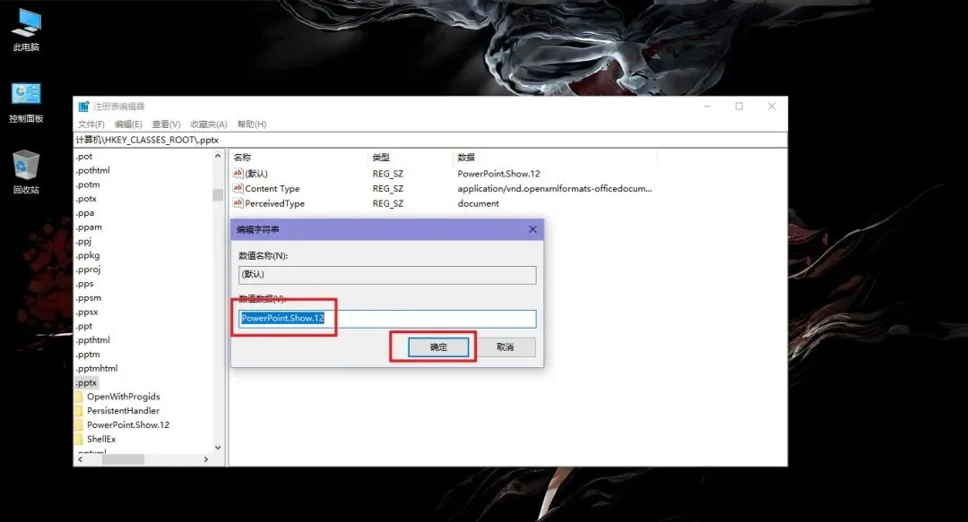将“(默认)”数值数据改为PowerPoint.Show.12