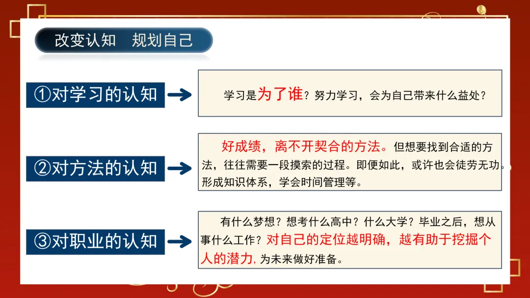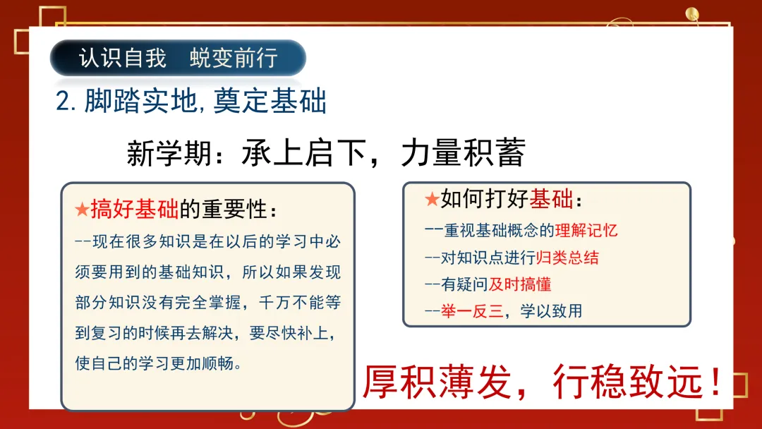 这份开学第一课ppt共分三大核心板块,层层递进贴合学生成长需求。