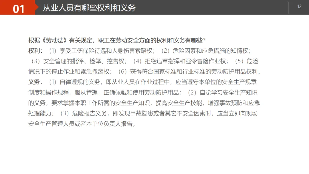 根据《中华人民共和国劳动法》和《安全生产法》的有关规定,职工在劳动安全方面既有明确的权利,也有必须履行的义务。