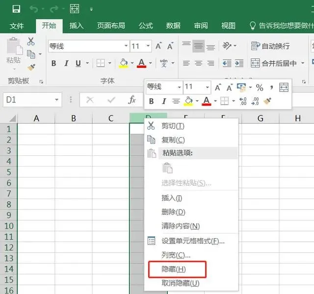 最常见的就是隐藏工作表中的某一行/列,选择行/列后,右键点击“隐藏”功能,即可。当然,我们也可以通过快捷键来操作,通过“Ctrl+9”快捷键,可隐藏行,而“Ctrl+0”则可以用来隐藏列。
