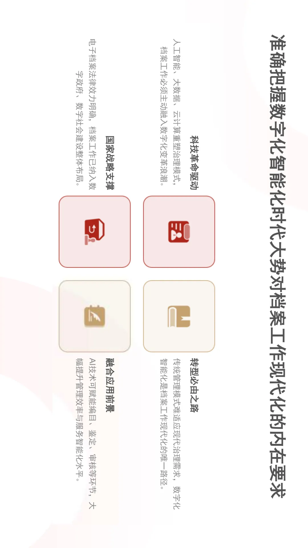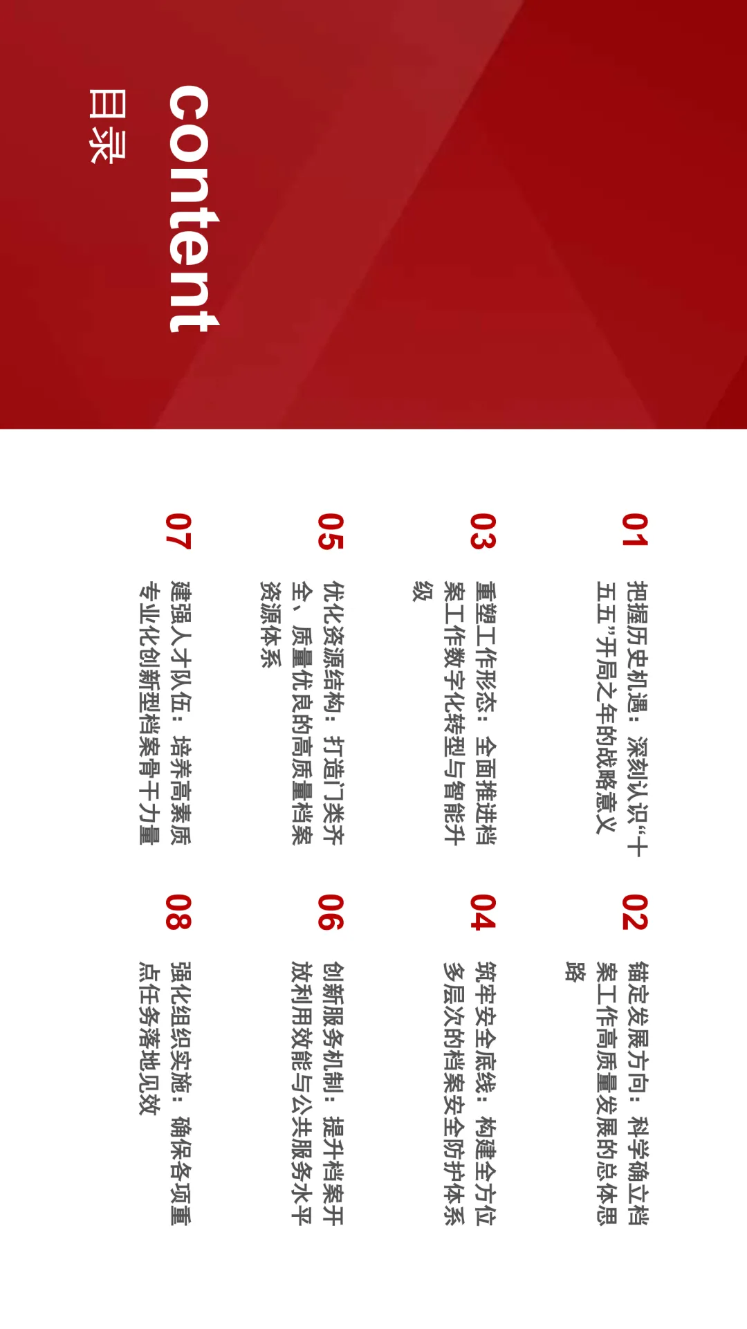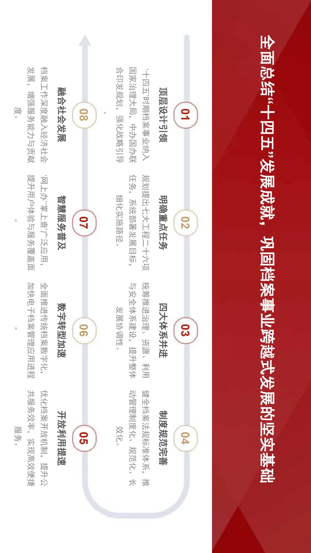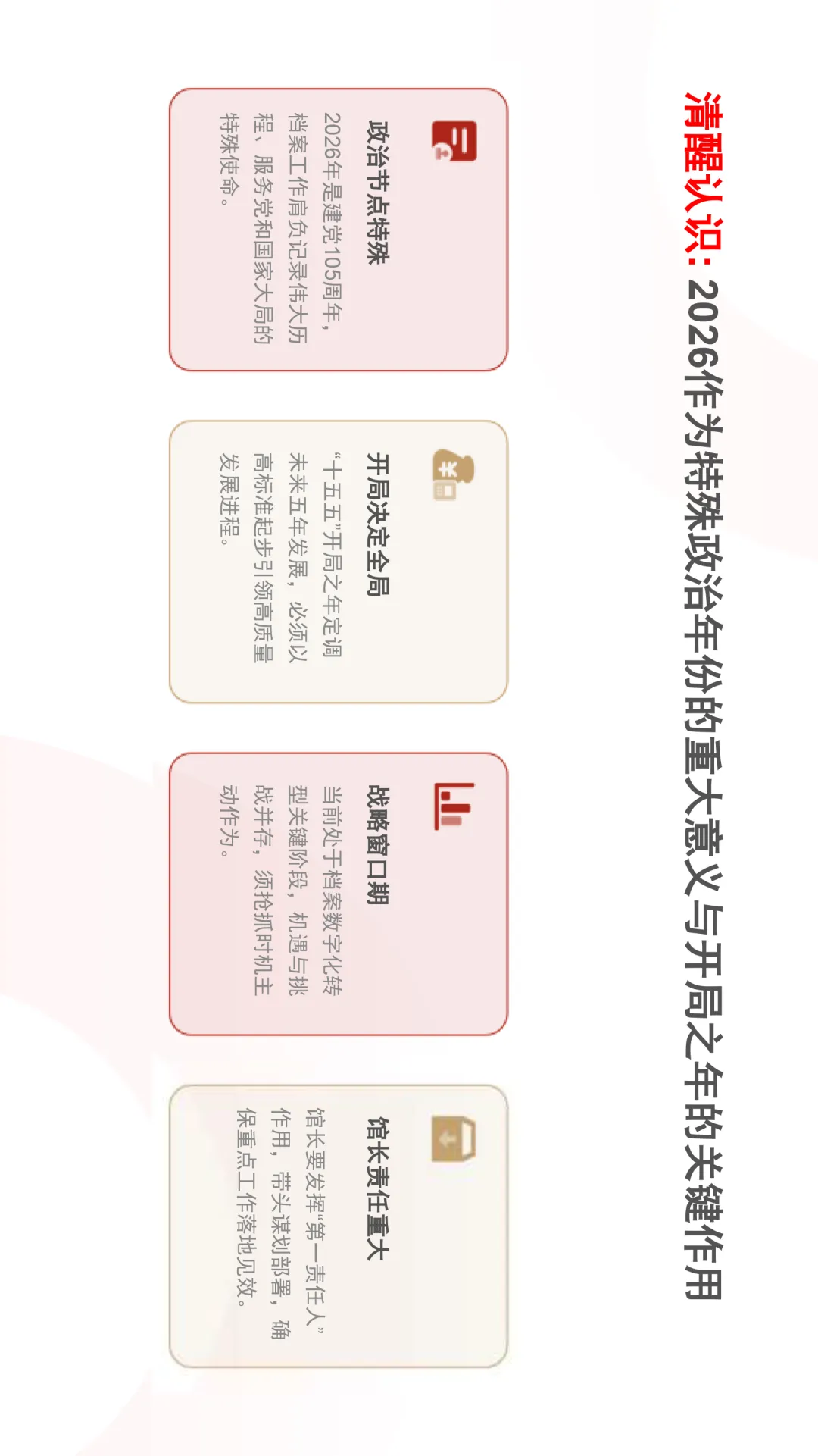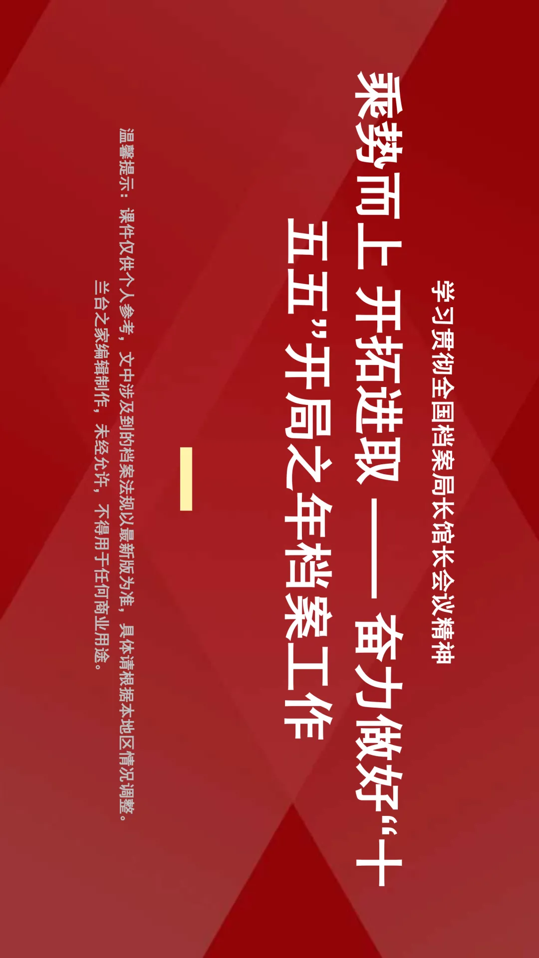 编者按:学习贯彻全国档案局长馆长会议精神,编辑学习制作这份PPT,旨在和大家在“十五五”开局之年,关注档案数字化、智能升级、资源建设、服务创新、安全保障、人才培养等方面的工作,并结合档案工作的发展趋势,梳理出一些工作方向和关注事项。欢迎大家留言交流。