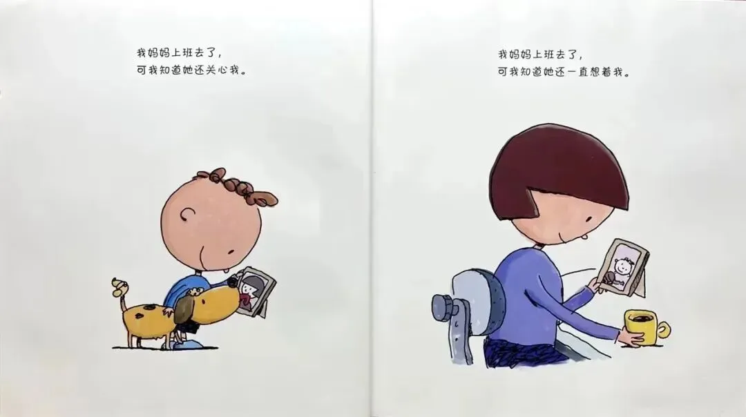 这是一本缓解分离焦虑的暖心绘本。故事里,妈妈上班去了,小男孩却很安心:他知道妈妈一直爱着他、想着他,想和他拥抱、玩耍、画画、骑车、荡秋千。妈妈下班回家,会把满满的爱都给他。文字简单重复、画面温暖,让孩子明白:短暂分离,爱从不缺席,帮助孩子坦然接受妈妈上班,建立安全感。