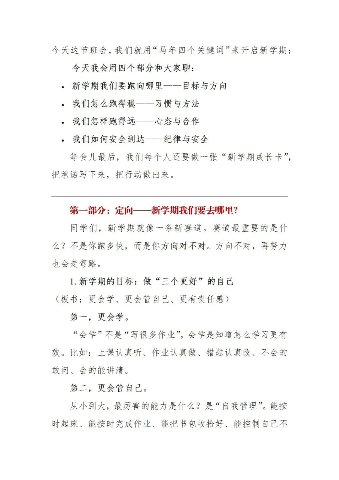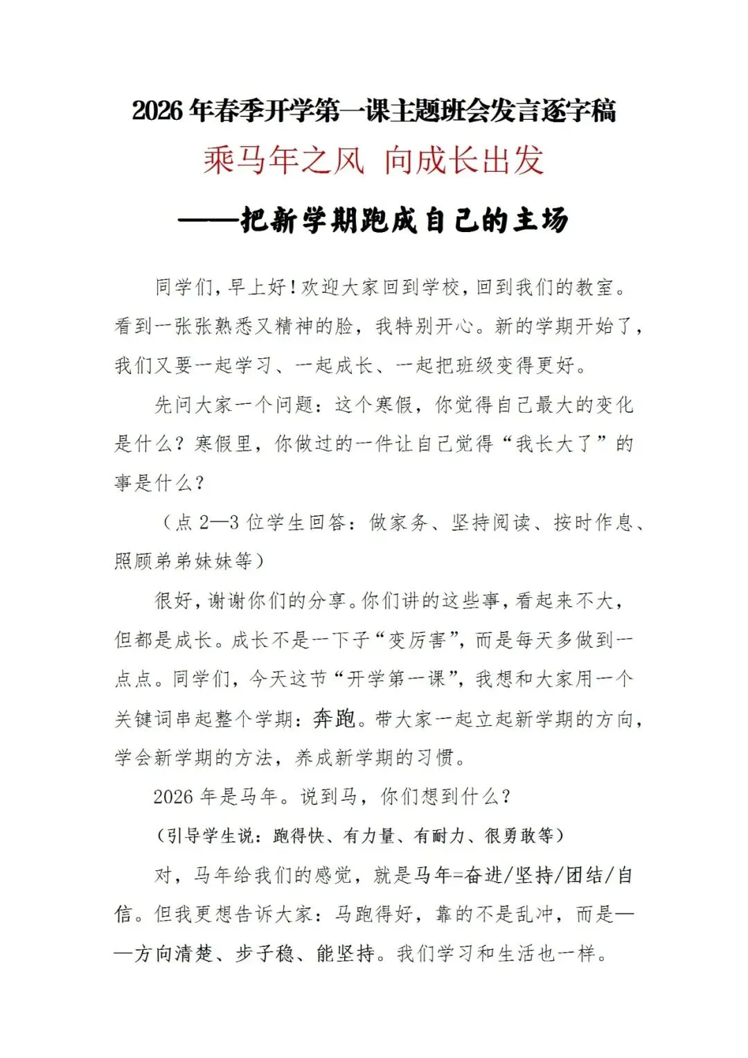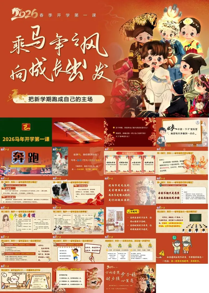 >2026年春季学期开学第一课主题班会PPT课件——“乘马年之风,向成长出发”(含配套发言稿)