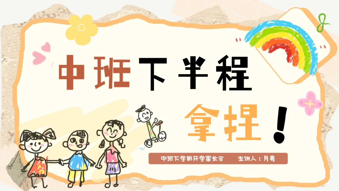 大家下午好!我是本班的主班老师月亮,非常感谢大家在百忙之中抽出时间来参加今天的家长会。中班下学期是孩子们成长过程中承上启下的关键阶段,今天我们齐聚在这里,核心是想和大家深入沟通,一起“拿捏” 孩子们这一学期的成长与发展。这里的 “拿捏”,不是控制,而是基于理解的陪伴;不是焦虑,而是胸有成竹的把握。希望通过今天的交流,我们能达成共识,携手为孩子们打造一个充实、快乐且有意义的学期。