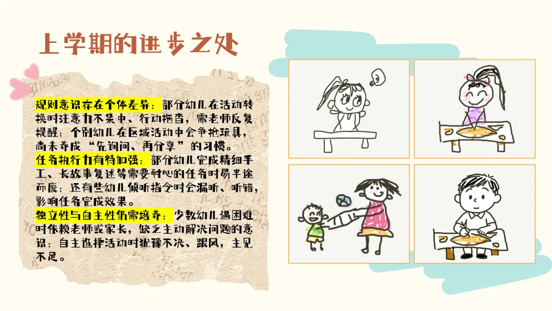 当然,孩子们在发展过程中也存在一些需要改进的地方: