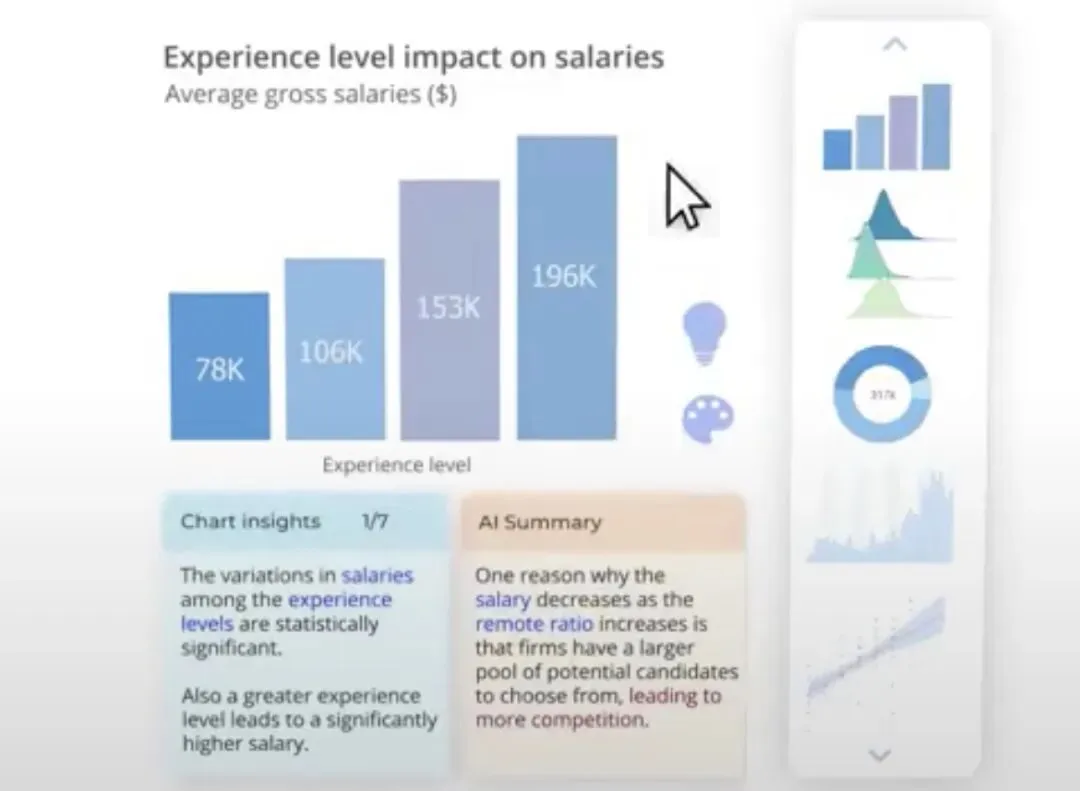 获得AI辅助的图表、演示幻灯片和切实可行的见解。