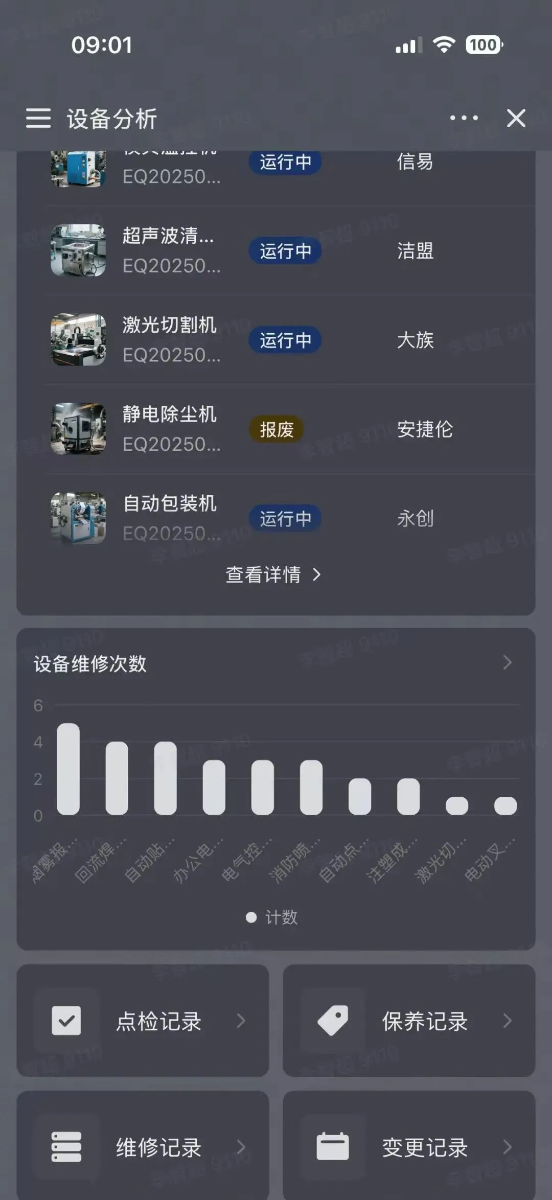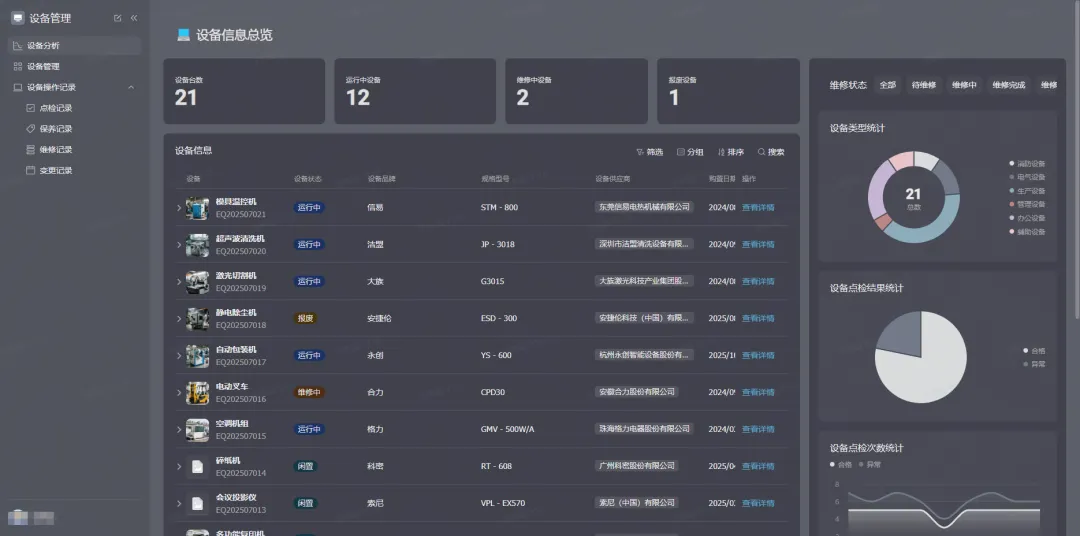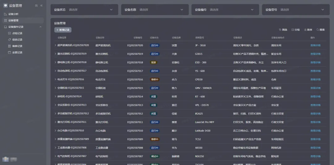 切换到「设备管理」页面,这是设备科长最常用的界面。
