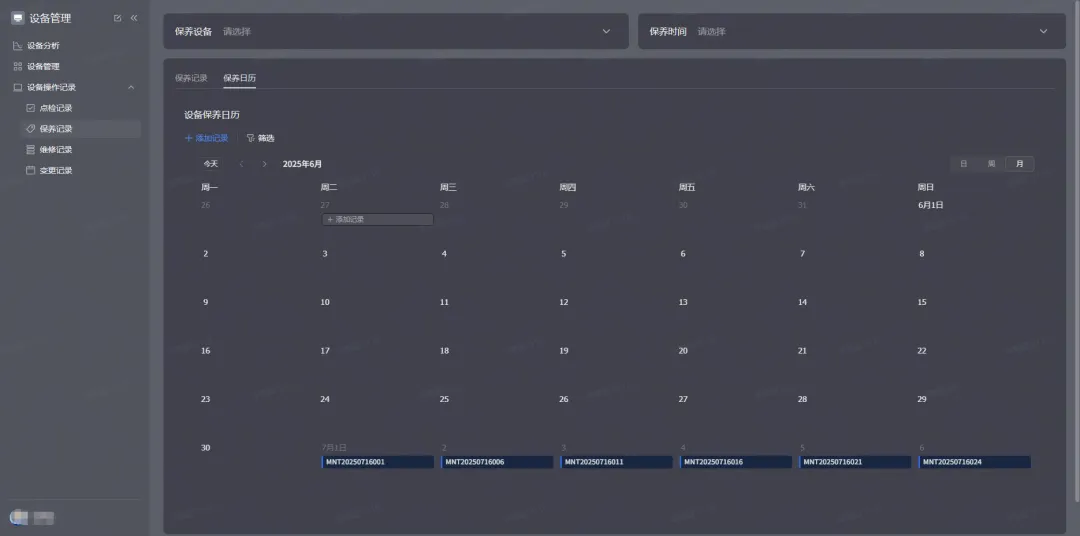 对于「保养记录」和「变更记录」,这个系统用到了日历视图。