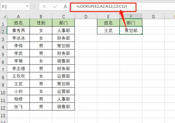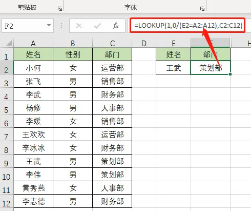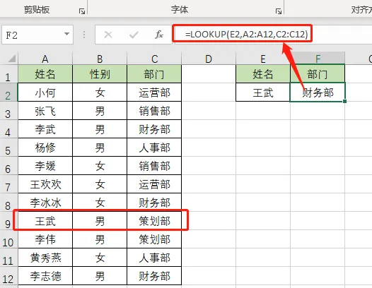 如下图:明明"王武"的部门是 策划部,公式结果却是 财务部!