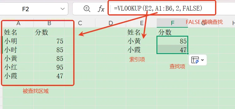 注意:被查找区域仅支持单行或单列,不支持多行/多列