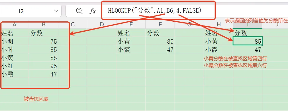 区别:HLOOKUP 专门用于查找数据排列在行中的情况,与 VLOOKUP(垂直/列查找)对应。