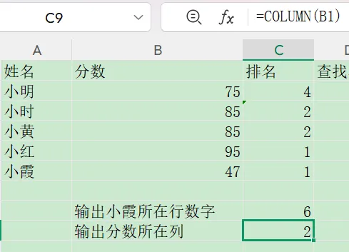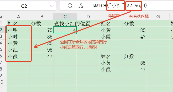 功能:用于返回指定内容在指定区域(某列或者某栏)的位置。