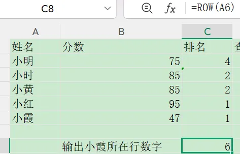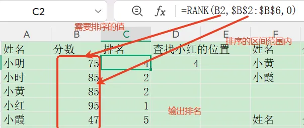 功能:求某一个数值在某一区域内一组数值中的排名。