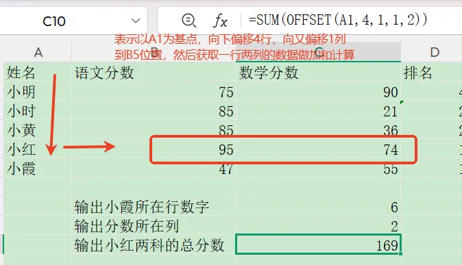 语法:=Offset(指定点,偏移多少列,偏移多少栏,返回多少列,返回多少栏)