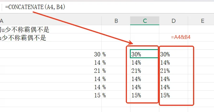 合并储存格中的内容,还有另一种合并方式是&,需要合并的内容过多时,concatenate效率更快。