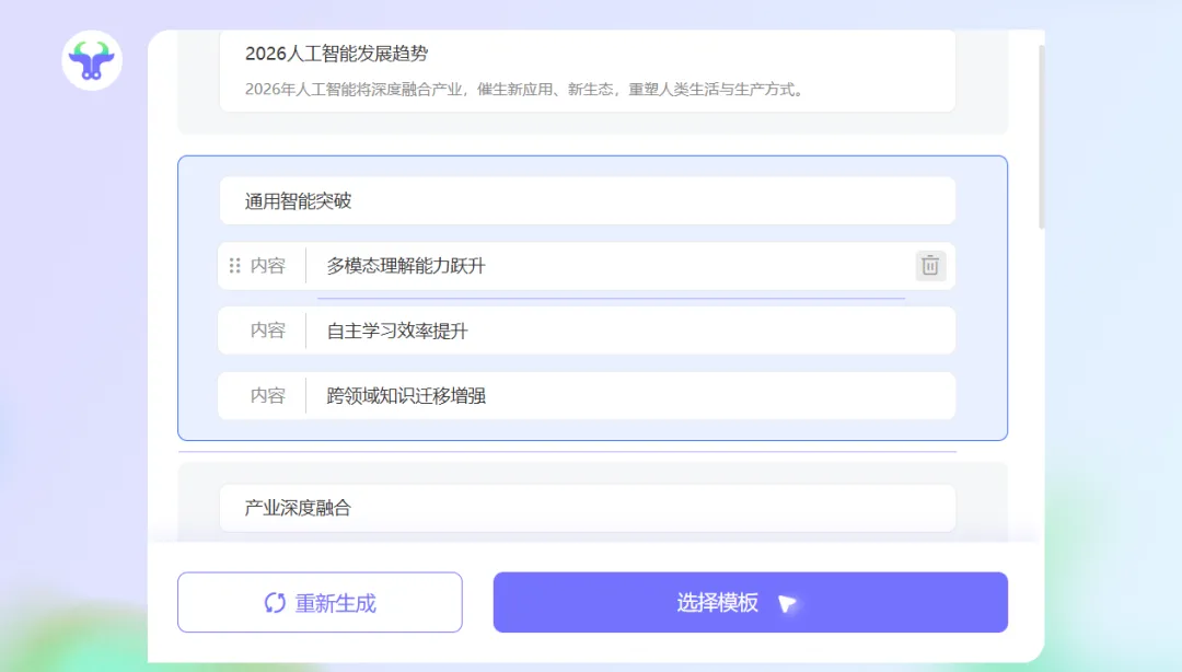 应对:生成后快速浏览一遍,确保逻辑通顺。7牛AI PPT支持手动调整大纲顺序,随时可以修正。