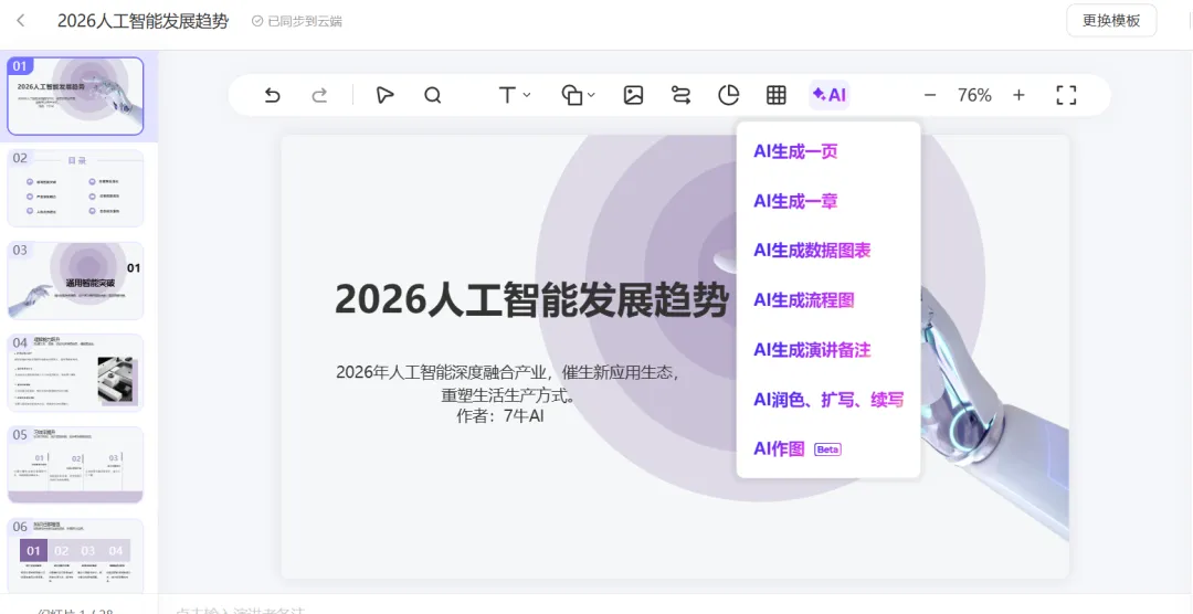 ▌1. 7牛AI PPT —— 国货之光,功能全面