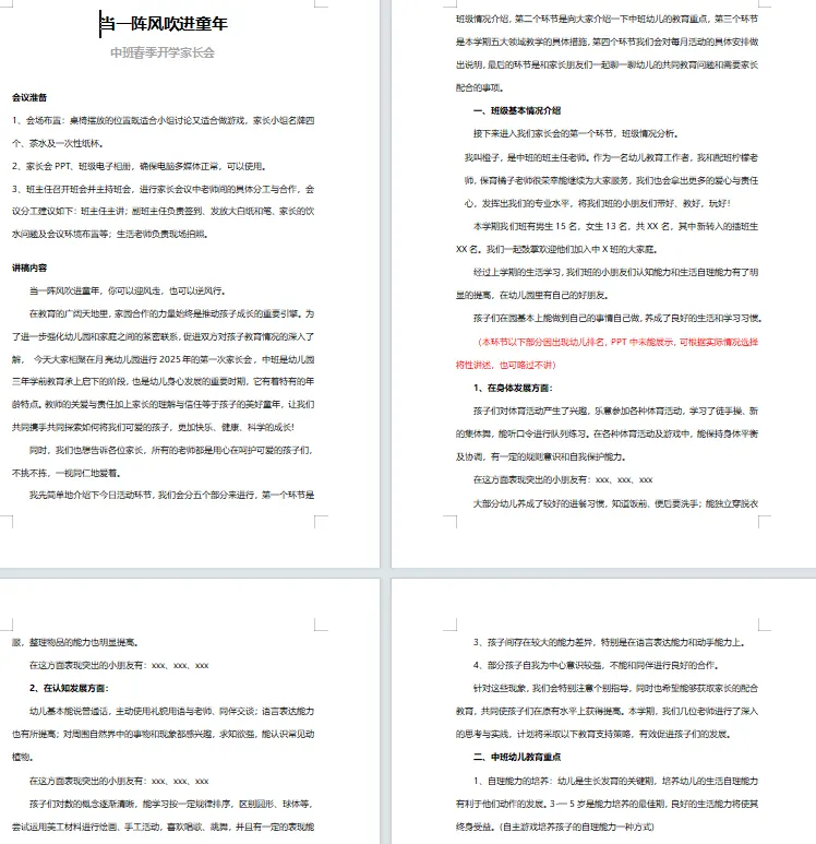 >幼儿园小中大班——《春季开学家长会》PPT+发言稿限时免费领取