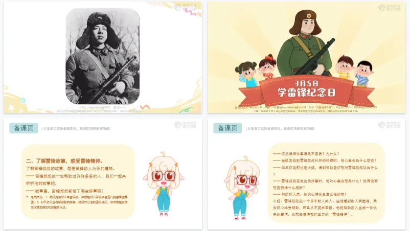 幼儿园中大班社会——《雷锋日,学雷锋》PPT+教案+活动反思+故事视频分享