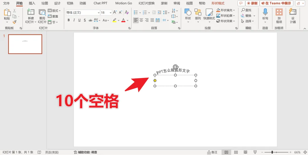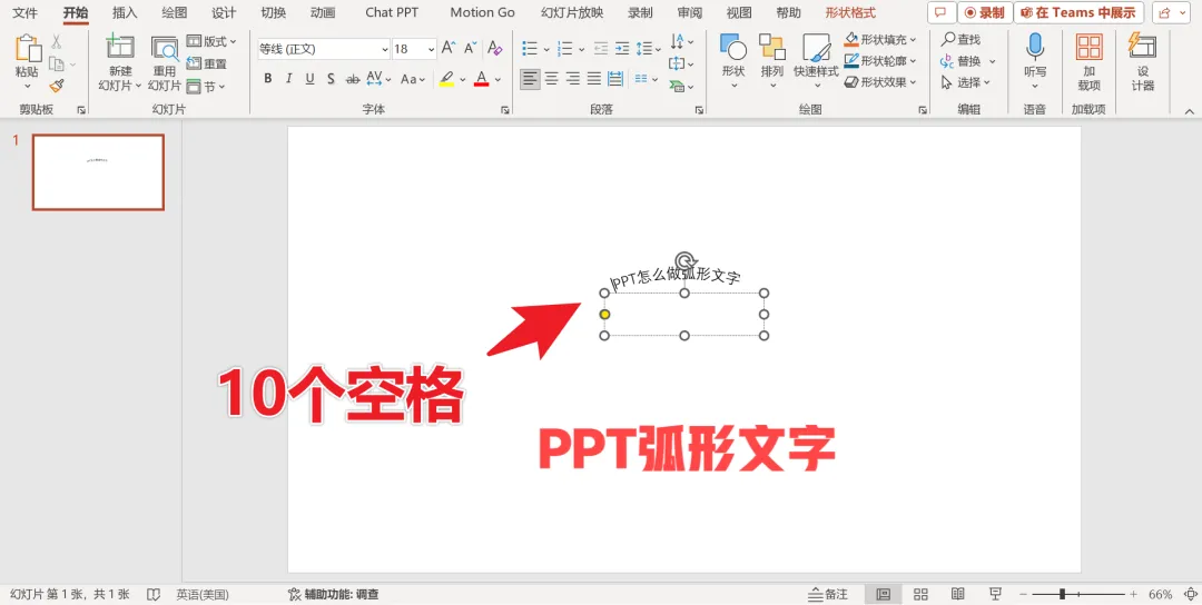 弧形文字初现,或许并不尽如人意,但调整起来并不复杂。若想微调弧形角度,可以在文字的首字符前轻轻敲击空格键。