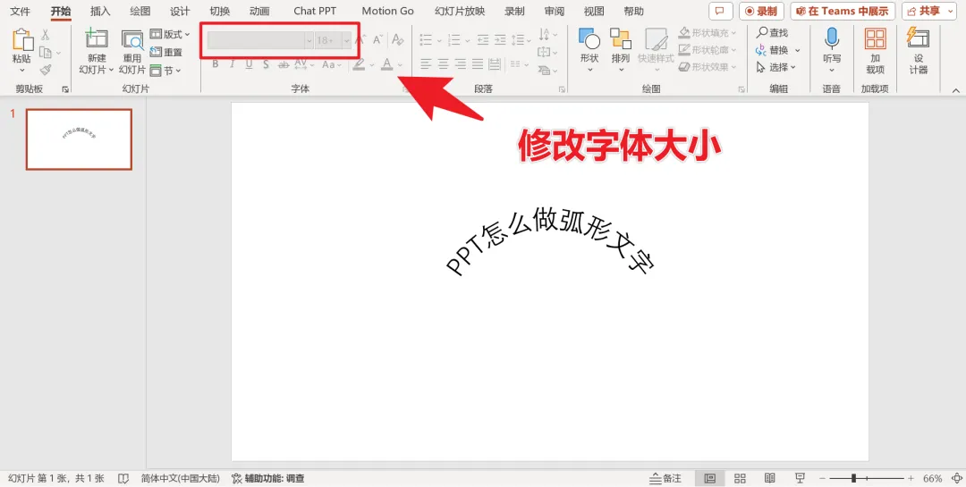 至于弧形文字的大小,调整起来同样简单。转到“开始”选项卡,点击“字体”下拉框,即可轻松调整字体大小。