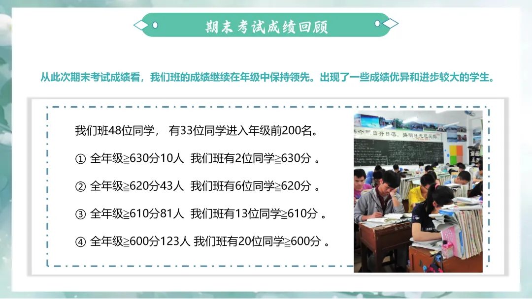 高二下学期是高中学习的关键转折点,一半是对过往知识的沉淀,一半是对高三冲刺的铺垫。今天我们相聚,就是为了凝聚家校合力,助力孩子在这个关键时期,夯实基础,平稳过渡,期末考试成绩回顾
