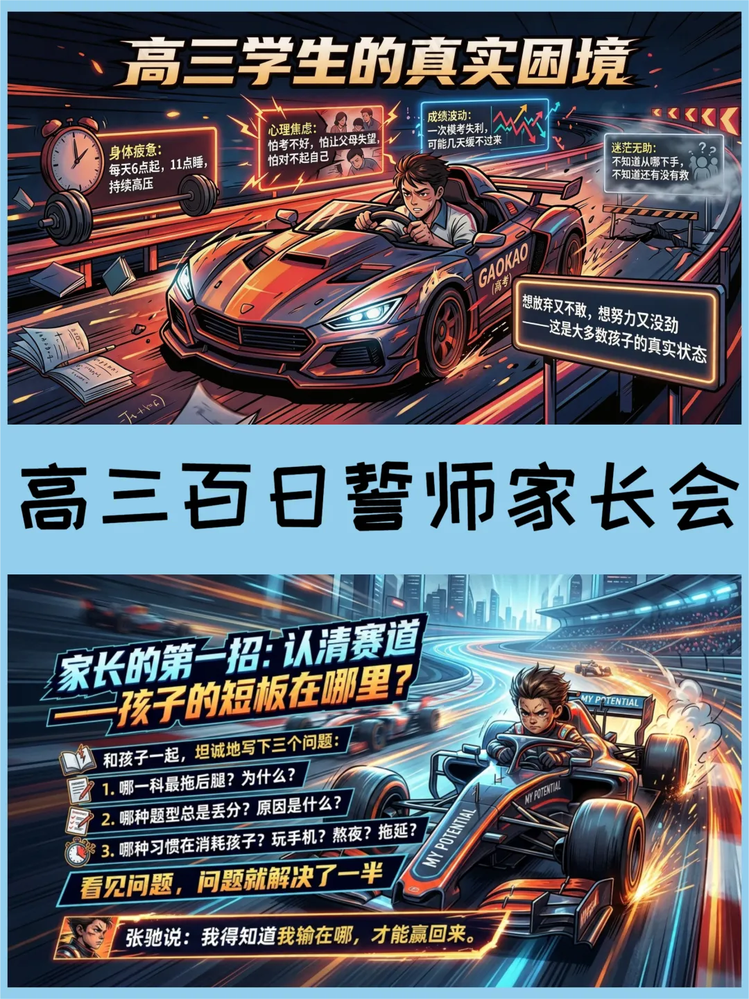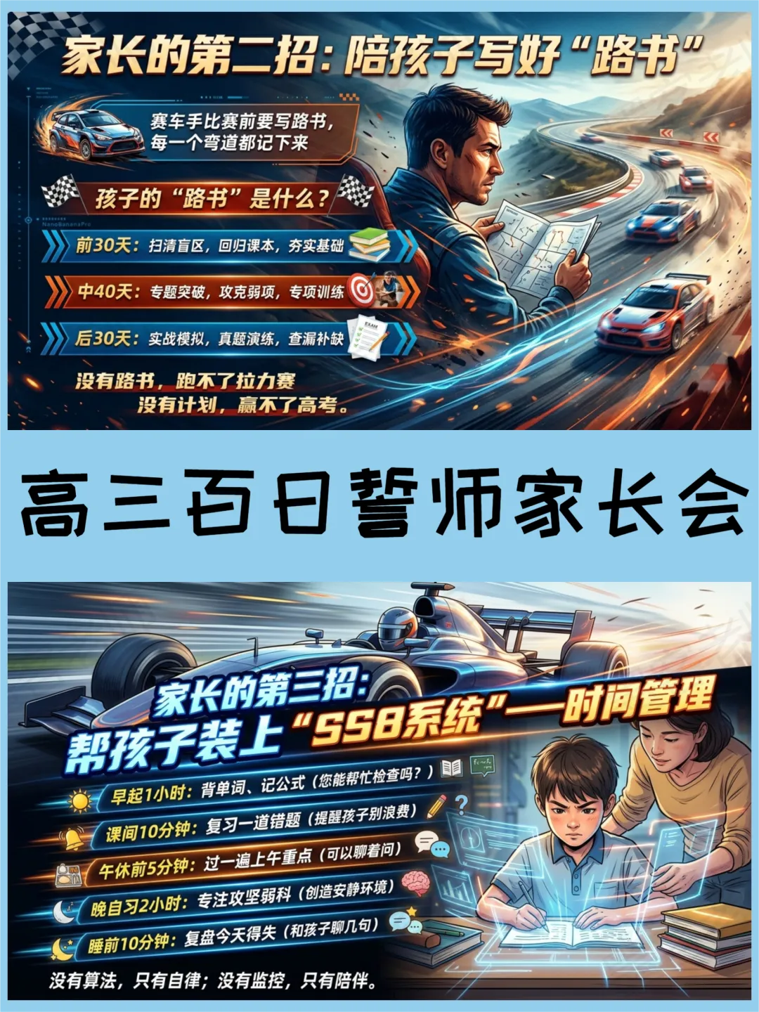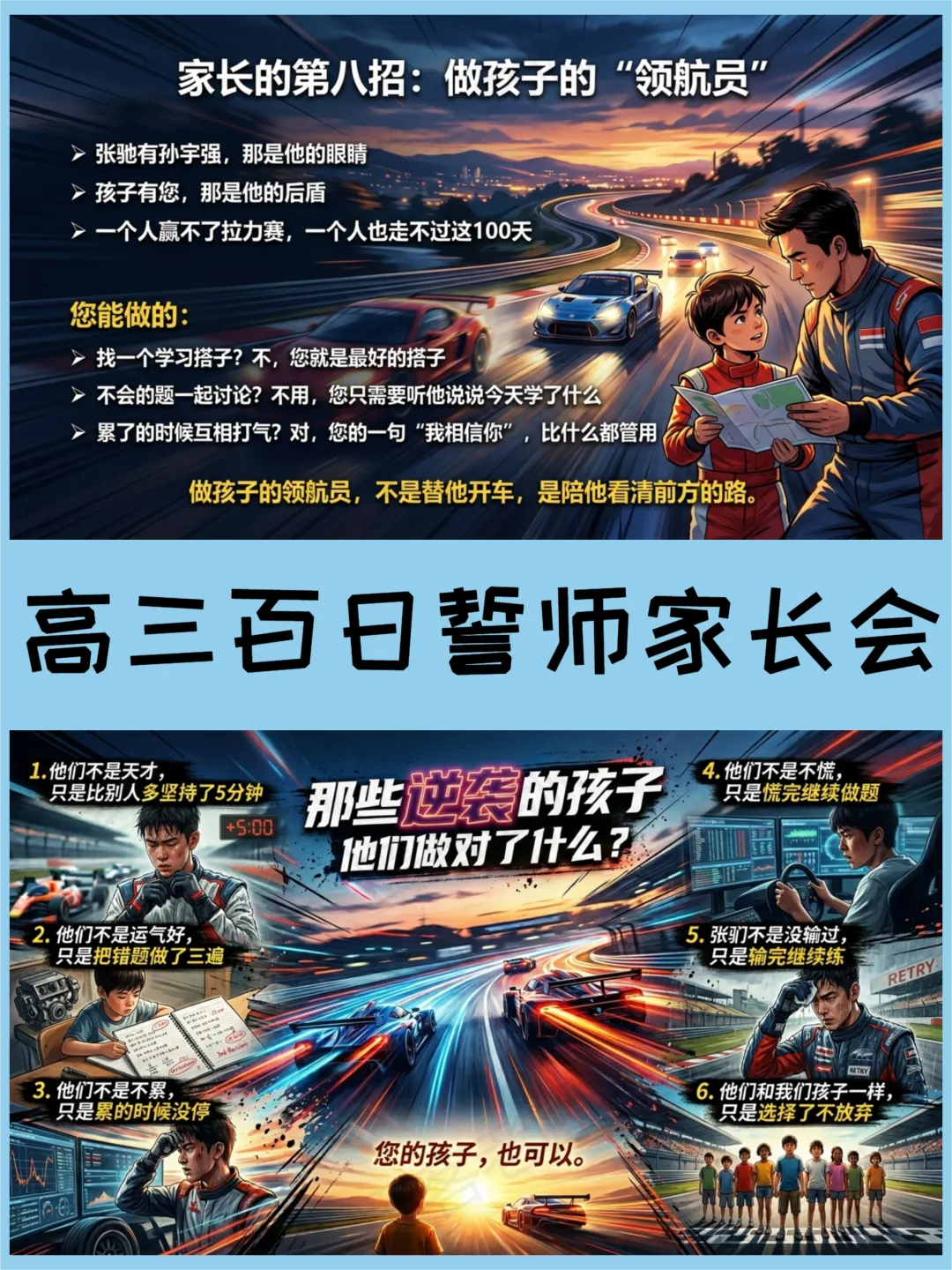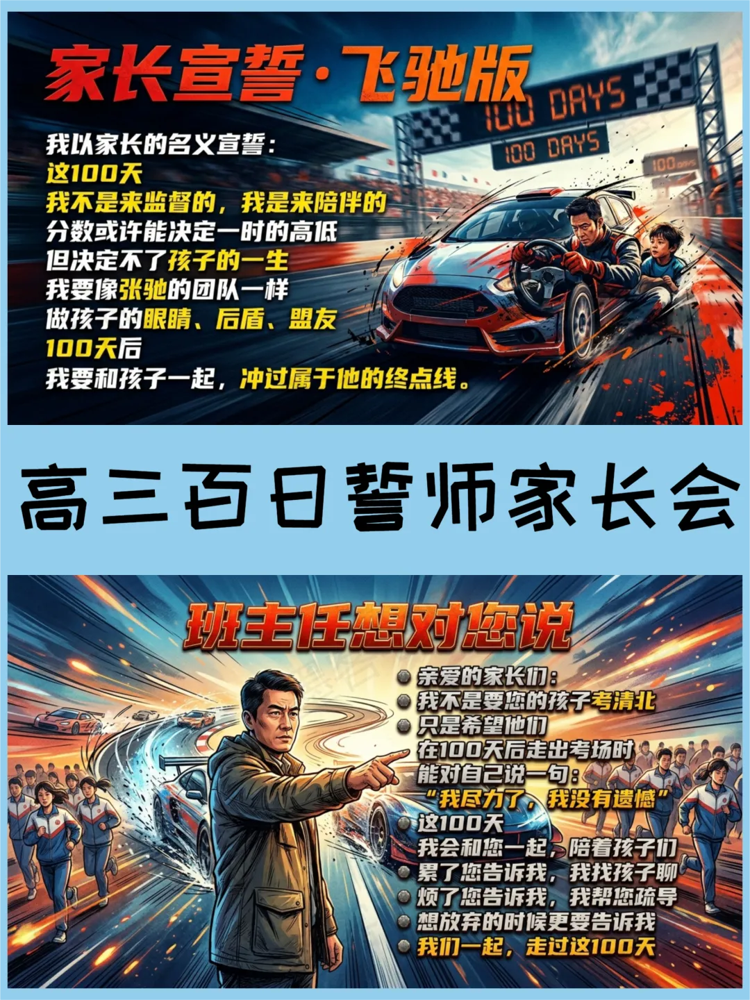 高三老师们,距离高考还有100天,这场家长会怎么开才能让家长真正行动起来? 刚开完家长会,效果炸裂!用《飞驰人生3》讲陪伴,家长全程投入,宣誓环节好多家长眼眶都红了。