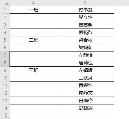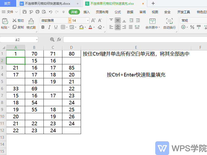 ■首先按住 Ctrl 键并单击所有空白单元格,将其全部选中。