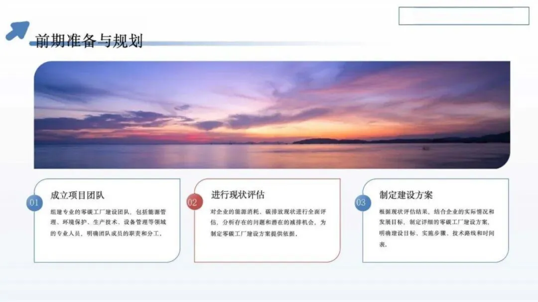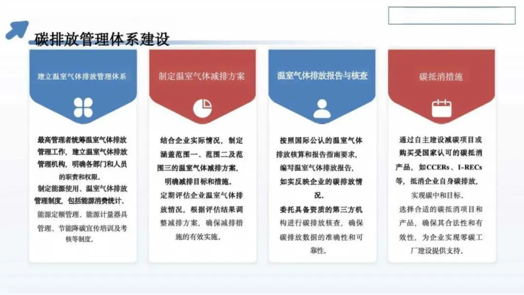 建设实施需分阶段推进:前期通过现状评估明确减排潜力,组建跨领域团队制定详细方案;中期聚焦建筑节能改造、设备更新及可再生能源系统建设,同步搭建能源与碳排放管理平台;后期通过第三方评价验证成效并持续优化。